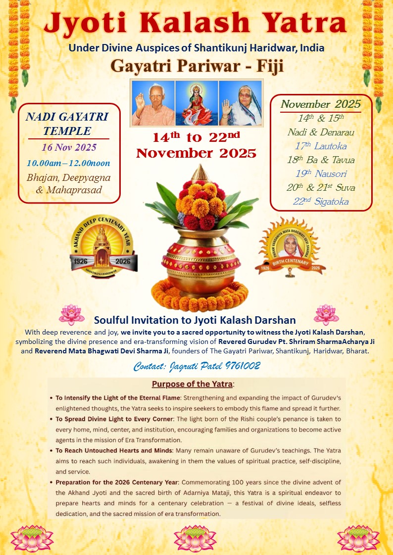 Jyoti Kalash Yatra 14th to 22nd Nov 2025 Click here to view the Flyer !!!