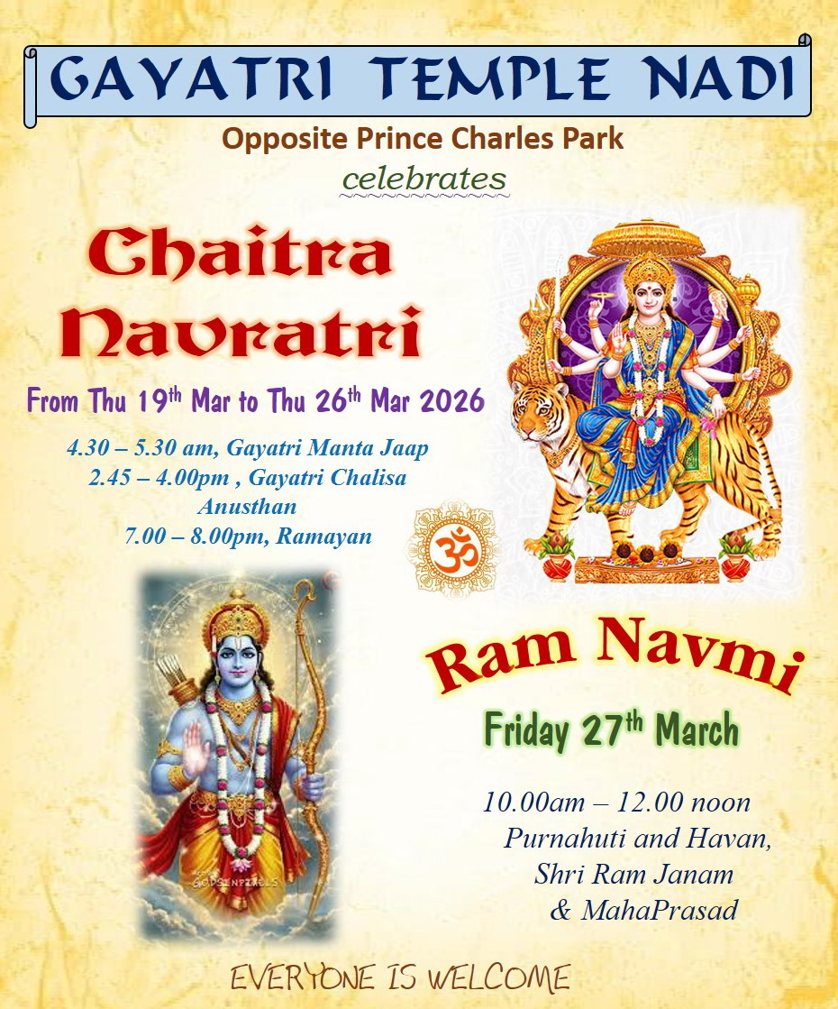 RECENT EVENTS WERE: Chaitra Navratri & Ram Naumi 19th to 27th March 2026 Click here to view the Flyer !!!