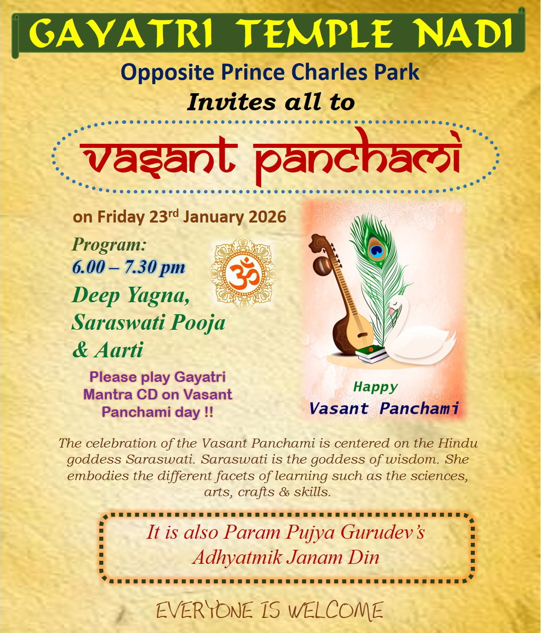 RECENT EVENTS WERE: Vasant Panchami 23rd Jan 2026 Click here to view the Flyer !!!